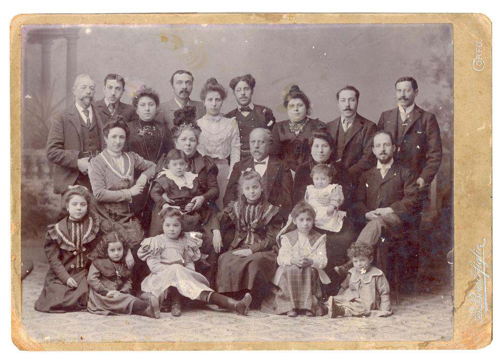 | osservazioni | La famiglia Battino a Corfù. Sulle ginocchia, secondo da sinistra nella fila in mezzo: Vittorio Battino (fratello maggiore di Nadia Coen?). Primo da destra seduto per terra in prima fila: Elio Battino, nonno materno di Manuela Martel-Misrahy |