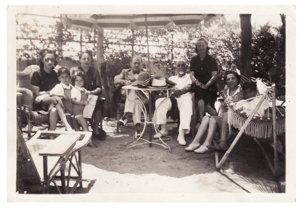 | osservazioni | da sinistra: Jeanne (in occhiali scuri), Freddy Martel-Misrahy, Manuela Martel-Misrahy, Martel-Misrahy xxx, il nonno paterno Behor Mizrahi, il prof. Carlo Pinto (ginecologo), la nonna materna Sara Filus, Lydia (seconda moglie del nonno Behor) con il figlio Raymond |