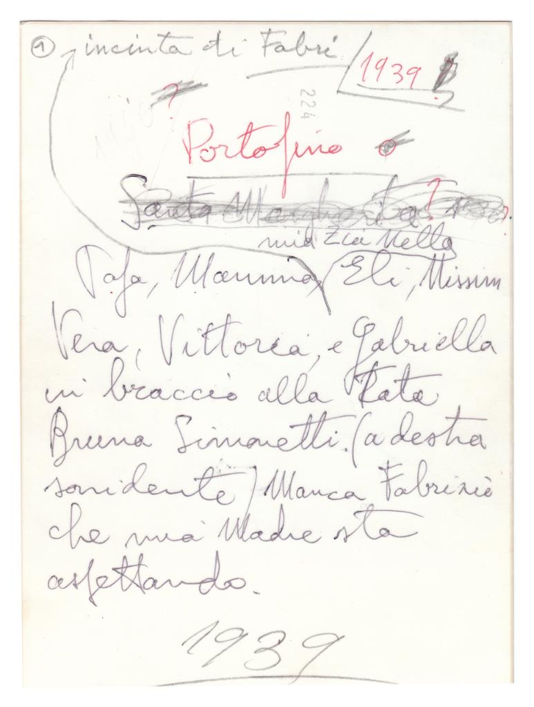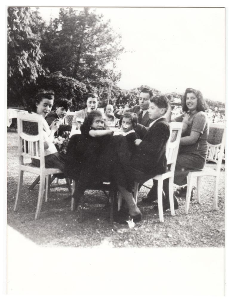 | osservazioni | Nella fotografia si riconoscono 1: Novelina Novelli in Meschoulam (incinta del terzo figlio Fabrizio), 2: Alberto Abramo Meschoulam, 3: la tata Bruna Simonetti con 4: Gabriella Meschoulam, 5: Vera Meschoulam. Sono inoltre presenti alcuni parenti da identificare: Nissim Meschoulam (morto all'ospedale Gaslini di tifo), la zia Nella, Eli e Vittoria |