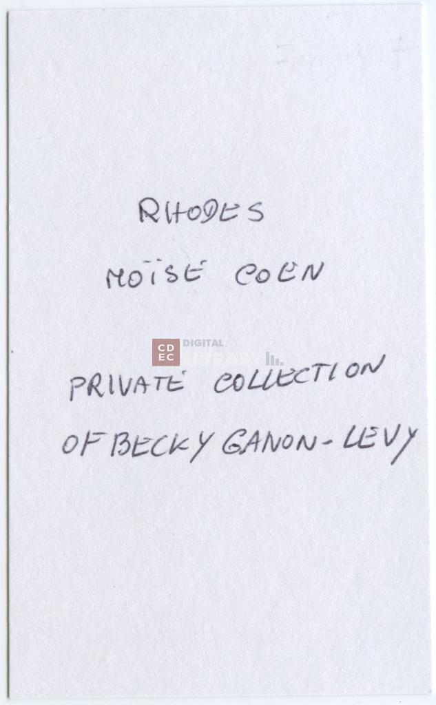 iscrizioni | sul verso del supporto la didascalia manoscritta "Rhodes/ Moise Coen" e "Private Collection of Becky Ganon - Levy" |