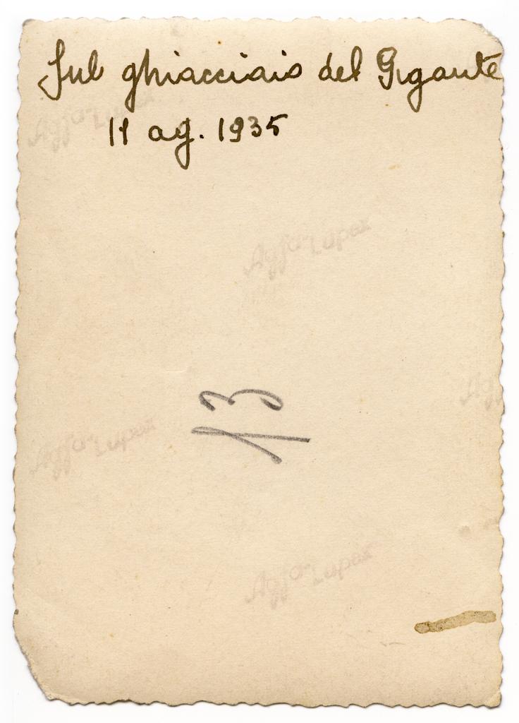 | iscrizioni | sul verso del supporto la scritta: "Sul ghiacciaio del gigante/ 11 ag. 1935" |
