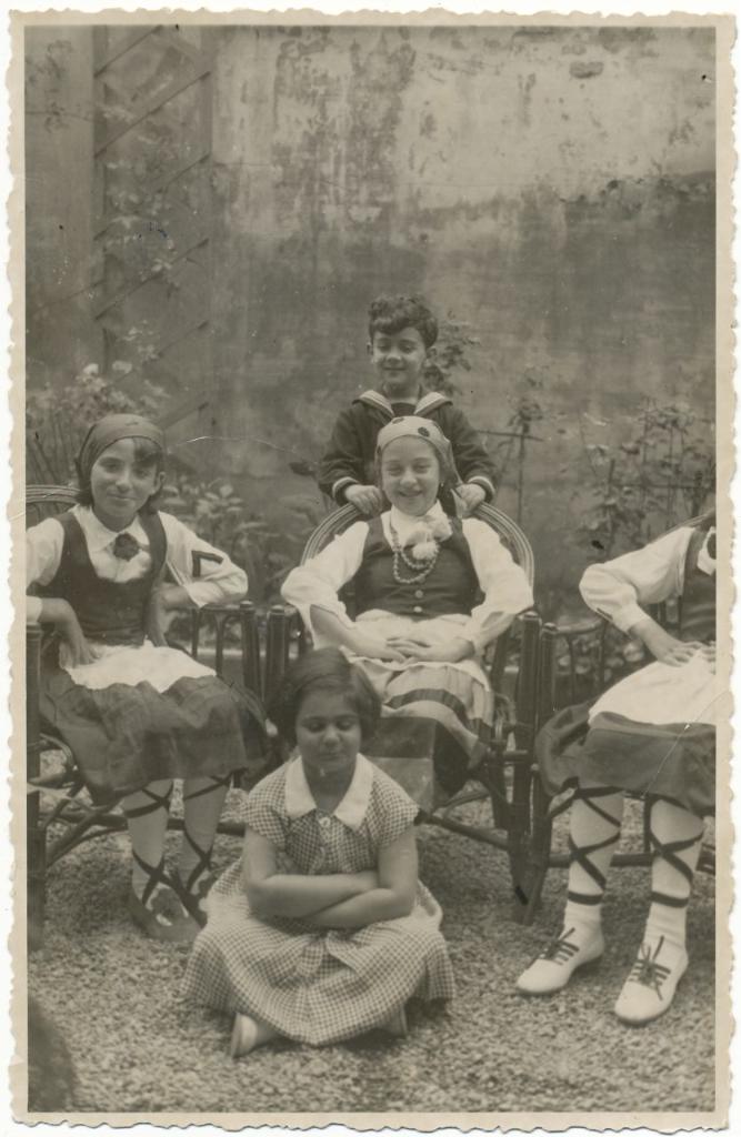 | titolo attribuito | Luisa Levi ed Elena Sinigaglia con il fratello Giorgio insieme ad altre due bambine travestiti a una festa di Purim a Mantova |