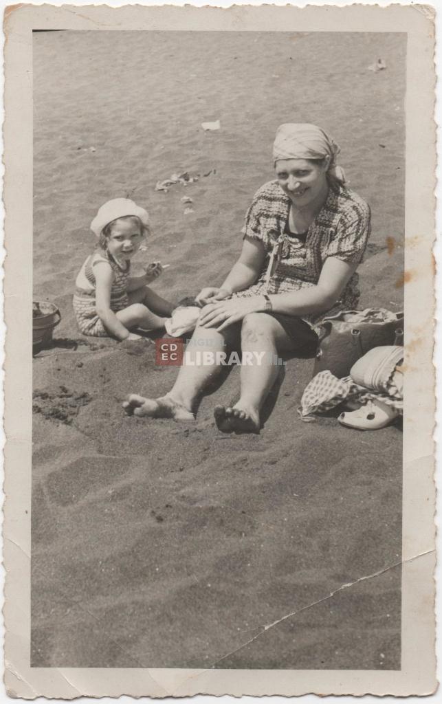 titolo attribuito | Regina Polacco con la figlia Claretta al mare |