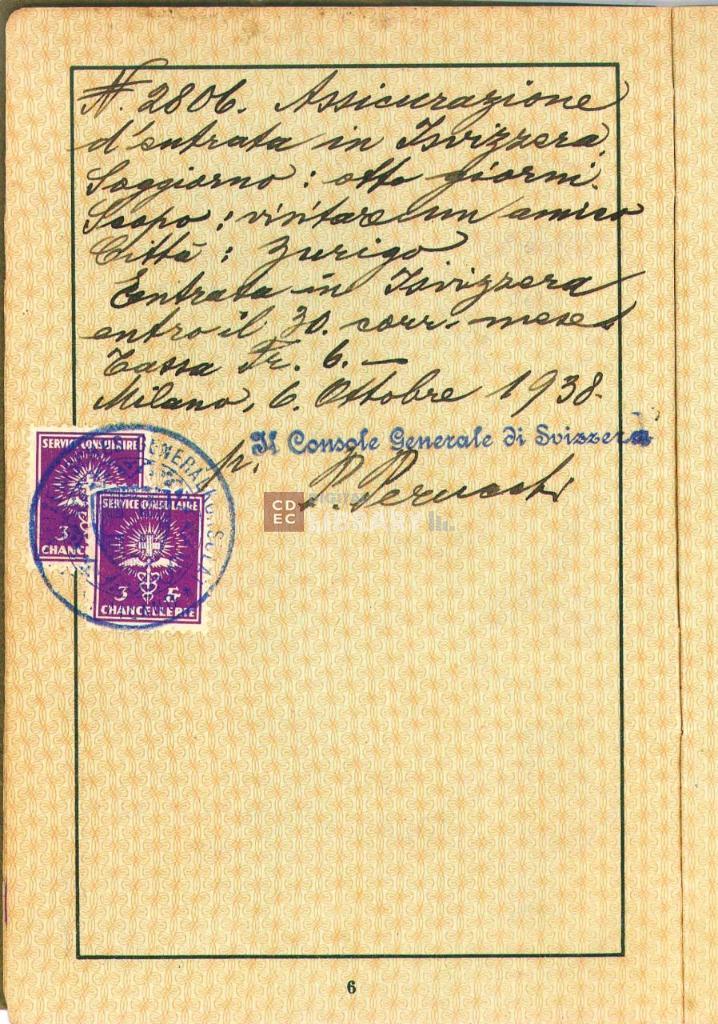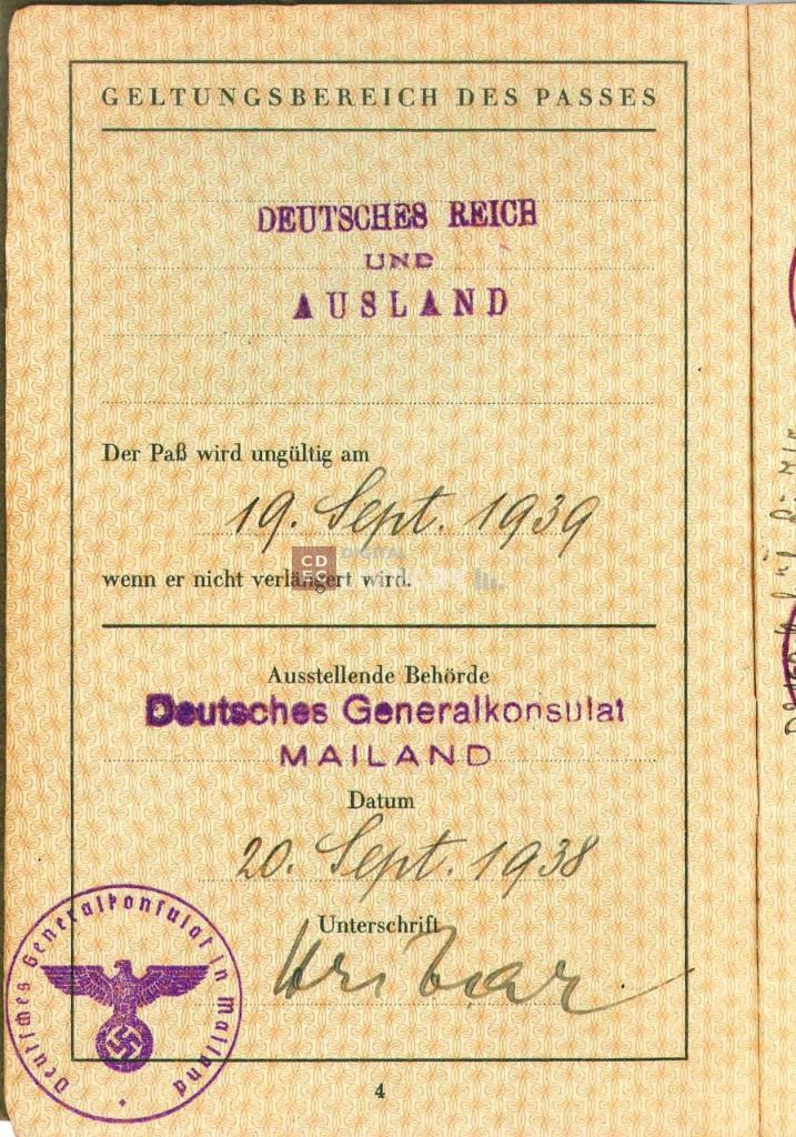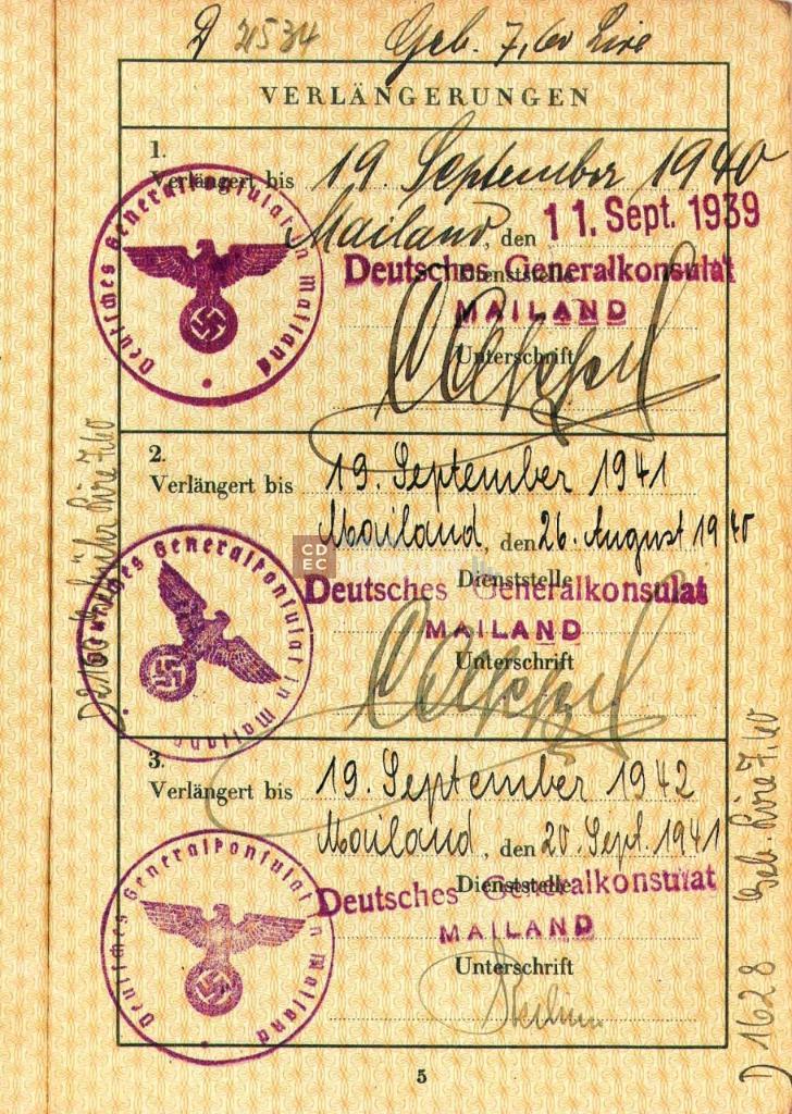 timbri, marchi | sul documento timbro a inchiostro con la scritta lungo il bordo "Deutches Generalkonsulat in Mailand" e al centro lo stemma della Germania nazionalsocialista |