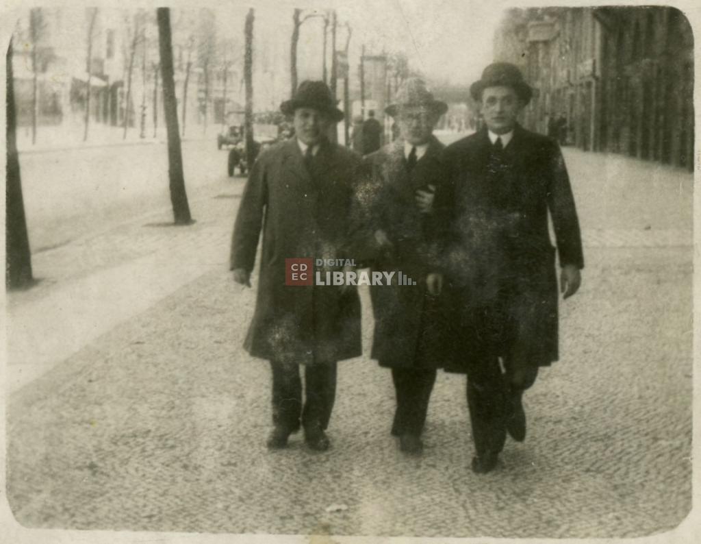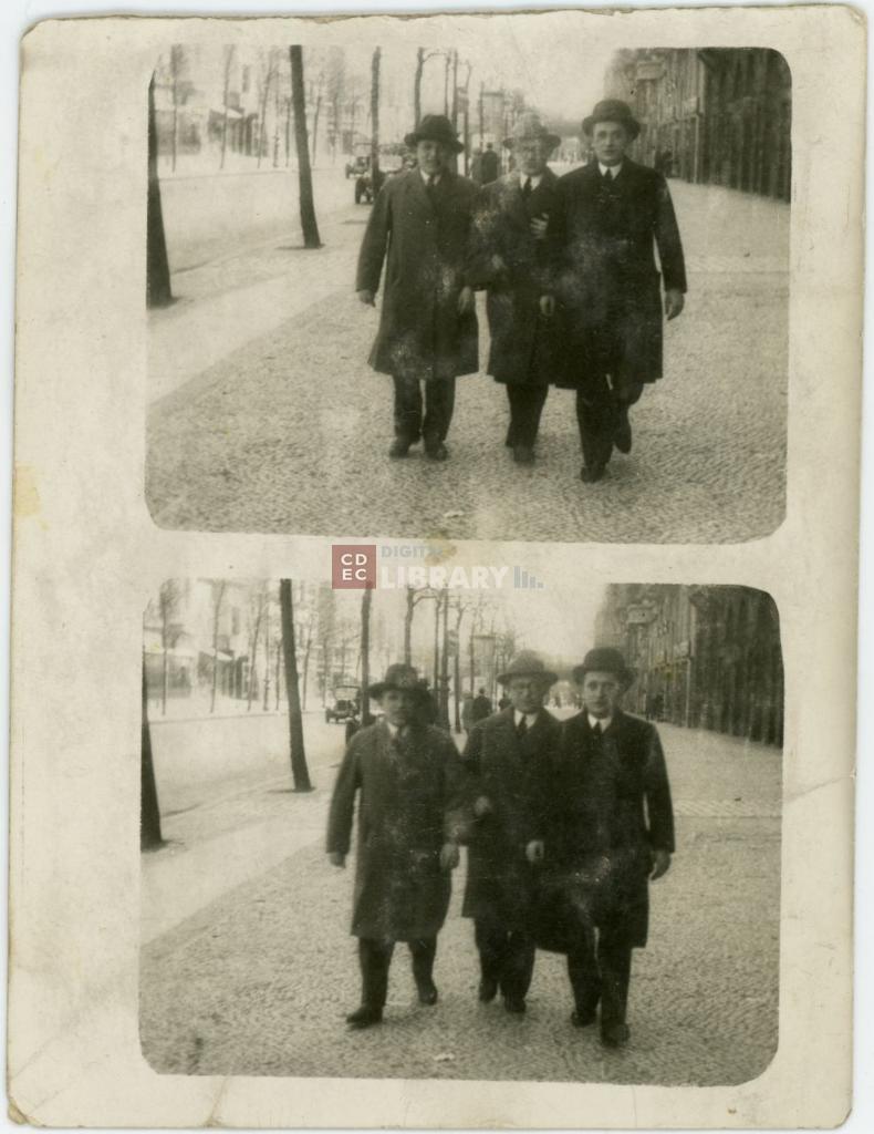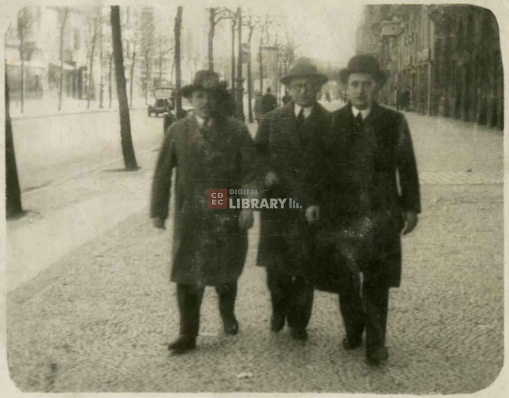 titolo attribuito | A destra Hersz Bank a passeggio con il fratello e un uomo non identificato |