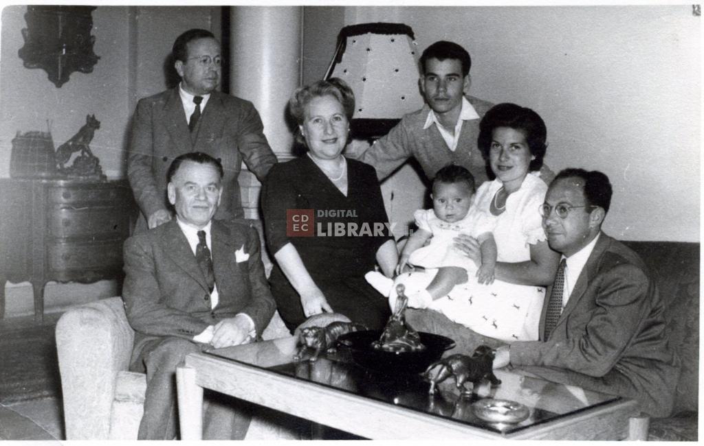 titolo attribuito | Ritratto di Isaac e Grety Grad con Paul Sussman, Ferry Grad, Arlette e Isaia Busnach con il figlio Ghil neonato in casa Grad al Cairo |