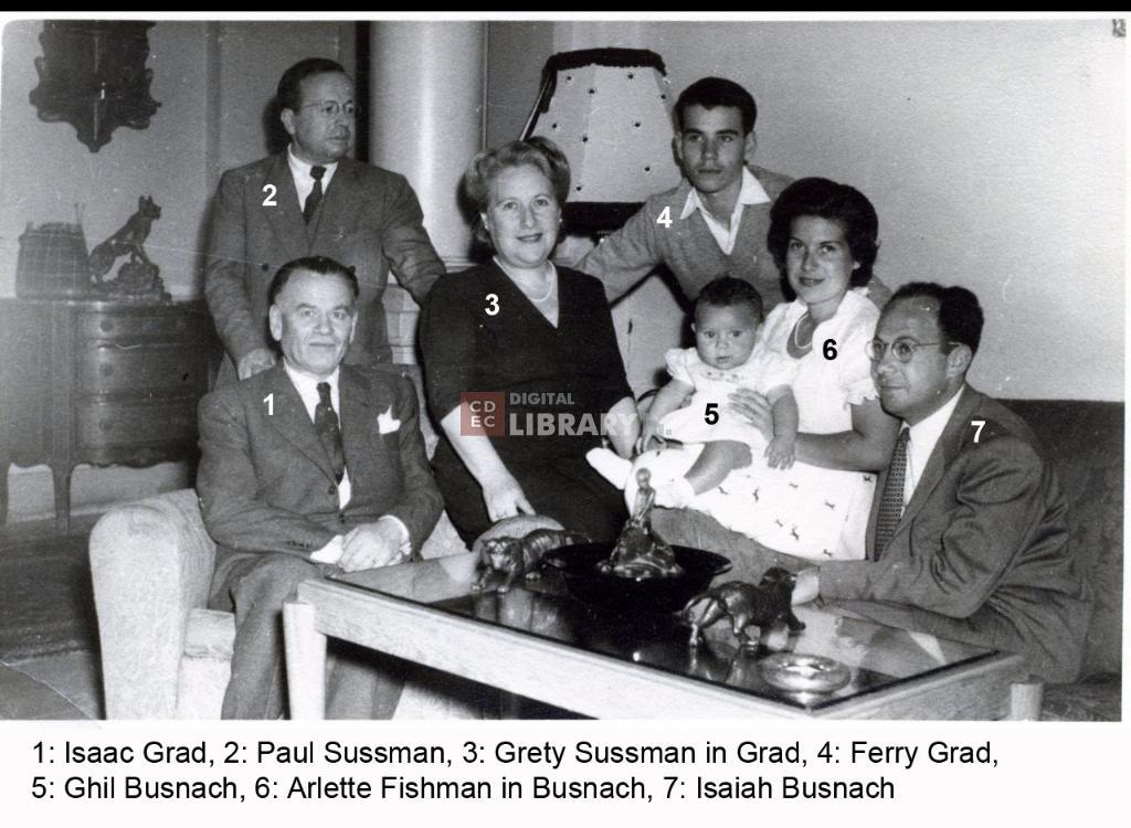 osservazioni | Nella fotografia si riconoscono 1: Isaac Grad (secondo marito di Grety Sussman), 2: Paul Sussman (fratello di Grety), 3: Grety Sussman in Grad (giĆ in Fishman), 4: Ferry Grad (figlio di Isaac Grad e Olga Sussman), 5: Ghil Busnach, 6: Arlette Fishman in Busnach (figlia di Albert Fishman e Grety Sussman), 7: Isaiah Busnach |