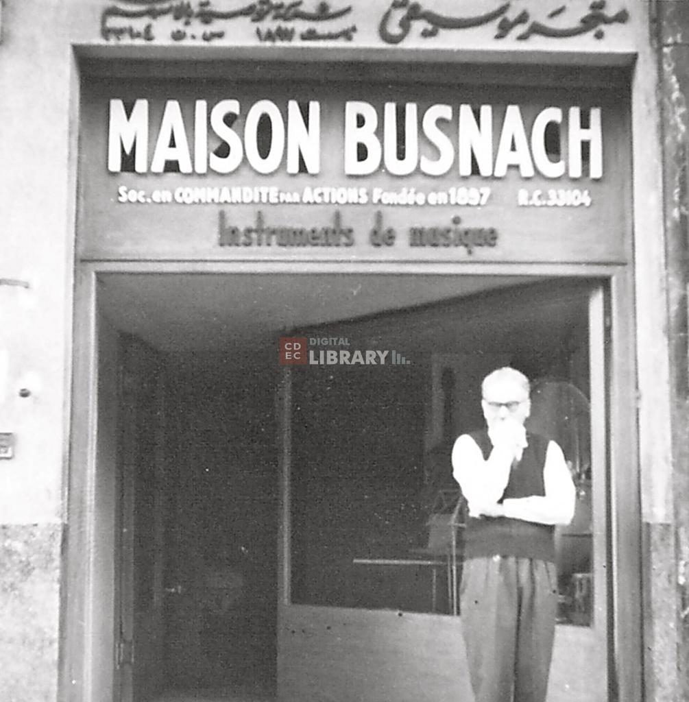 notizie storico-critiche | Abramo Roditi รจ ritratto sulla soglia del negozio di strumenti musicali del cugino Isaiah Busnach (fondato nel 1897), dopo l'ultima ristrutturazione |