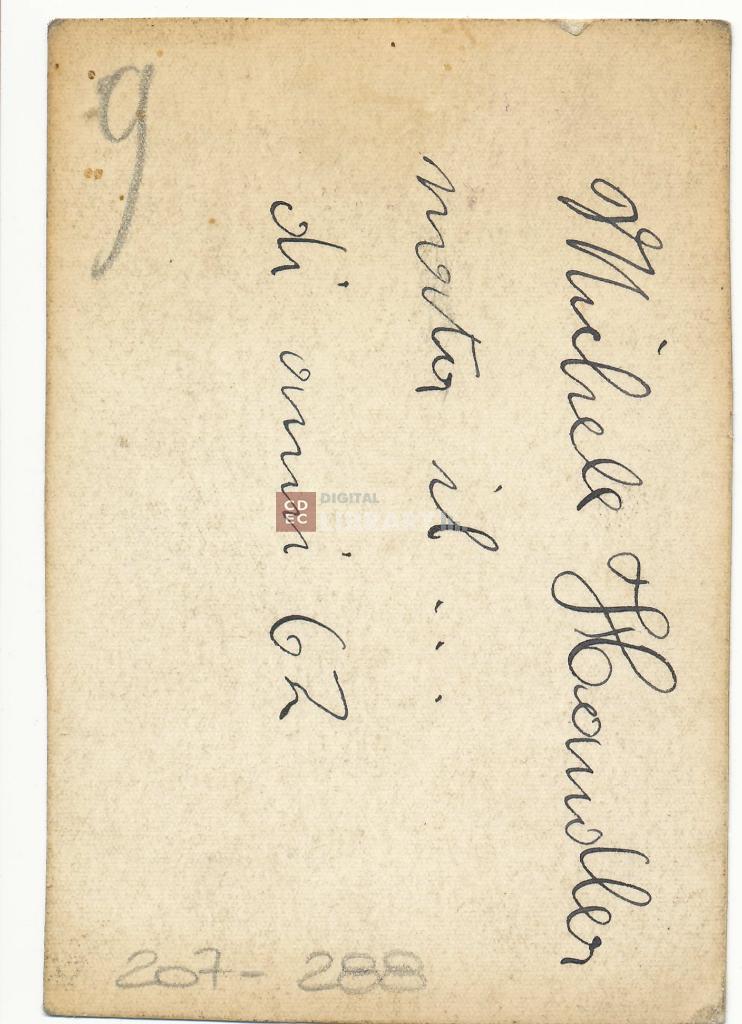iscrizioni | sul verso del supporto: "Michele Handler nato il ... di anni 67" |