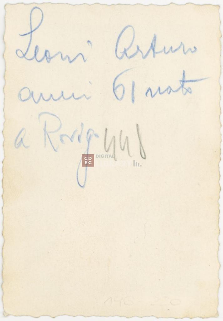 iscrizioni | sul verso del supporto: "Leoni Arturo anni 61 nato a Rovigo" |