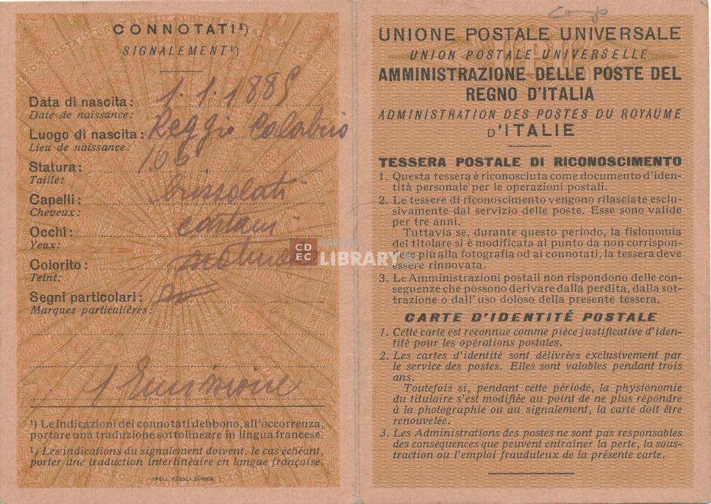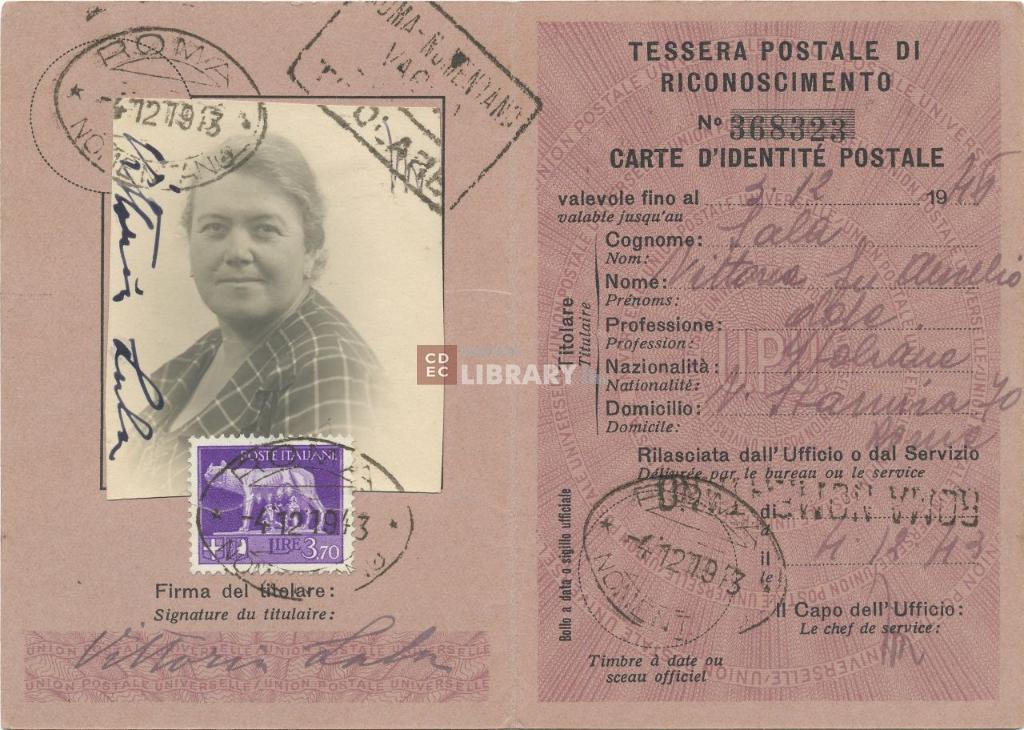 notizie storico-critiche | La tessera postale di riconoscimento di Vittoria Sala in Cardinali presenta forse le false generalità di una donna di cui non si conosce la reale identità |
