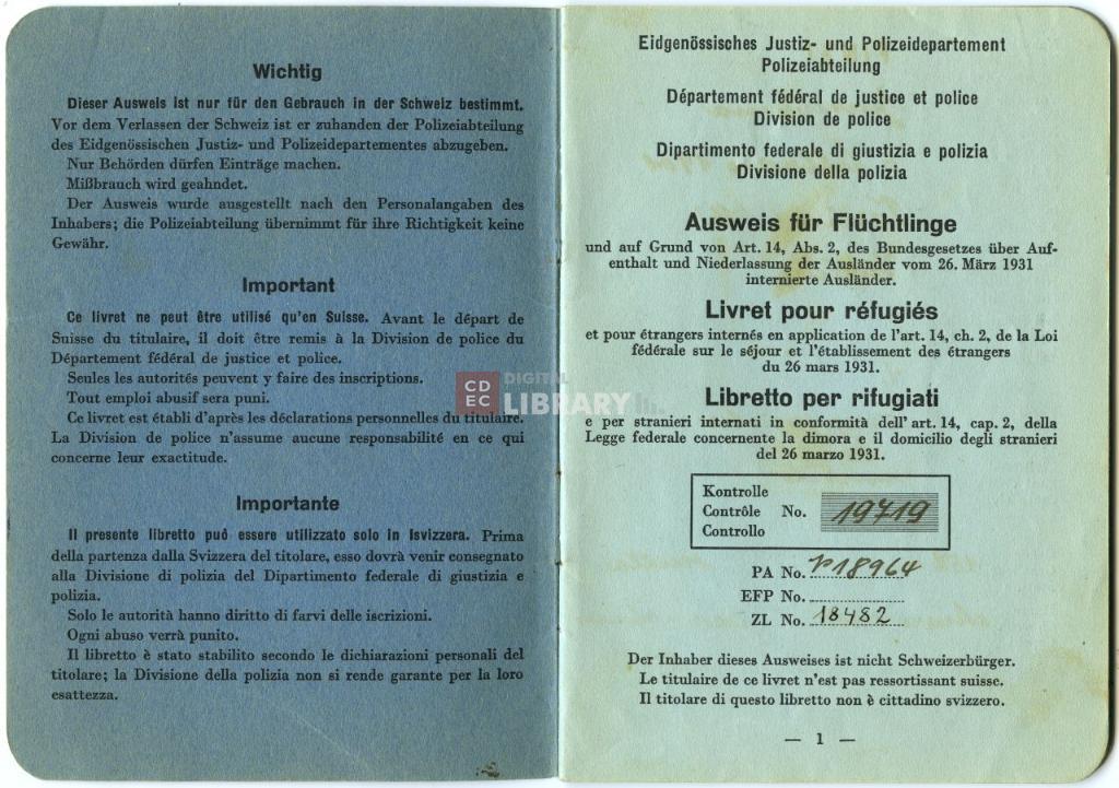 titolo attribuito | Libretto per rifugiati di Finzi Giuseppina |