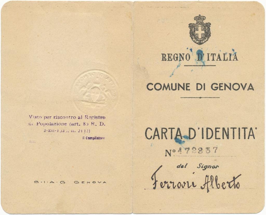 | titolo attribuito | Carta d'identità con false generalità di Alberto Lattes (alias Alberto Ferrari) |