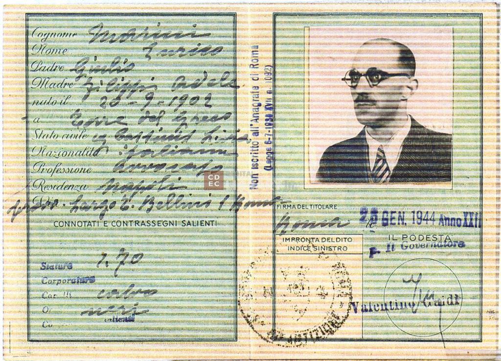 | titolo attribuito | Carta d'identità con false generalità di Sergio Piperno (alias Enrico Marini) |