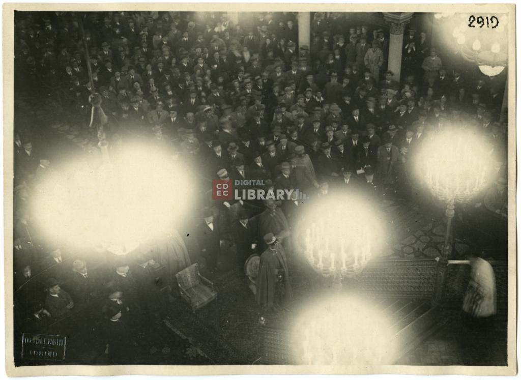 titolo attribuito | Veduta del Principe Umberto di Savoia all'interno del Tempio di Torino durante la visita |