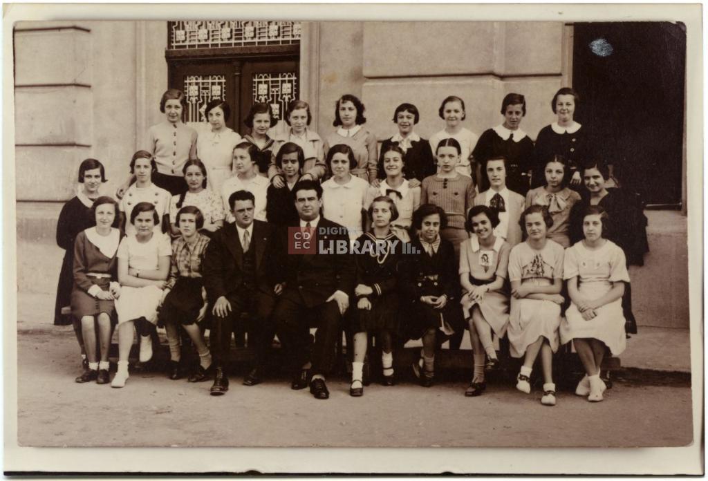 titolo attribuito | Erna Berger e Gisella Kluger con le compagne di classe e gli insegnanti della scuola media di Fiume |