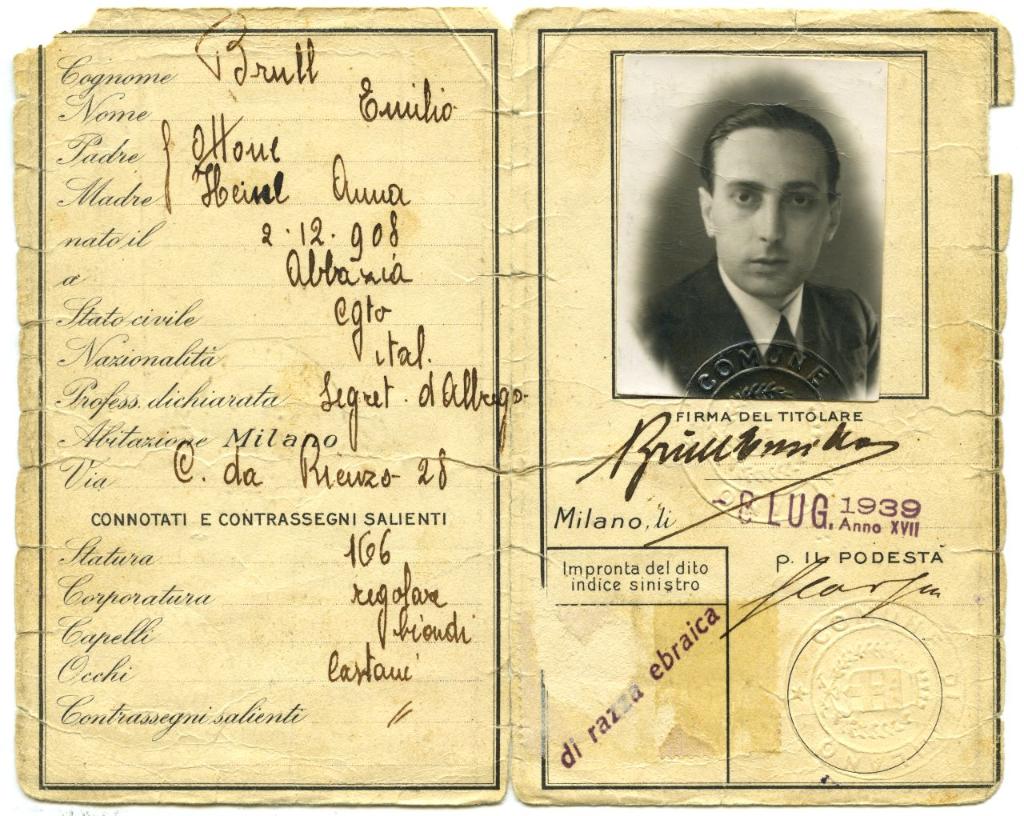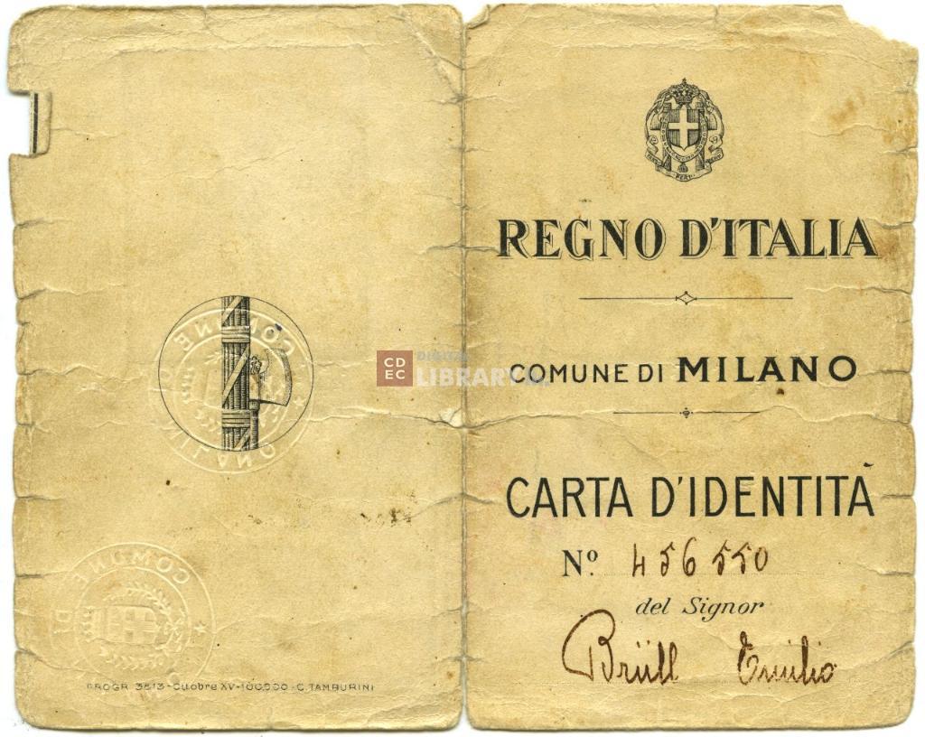 | notizie storico-critiche | La carta d'identità di Emilio Bruell, rilasciata dal Comune di Milano l'8 luglio 1939, riporta la dicitura "di razza ebraica" |