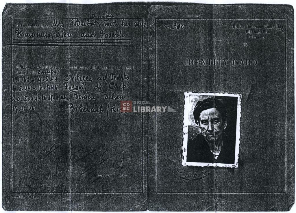 titolo attribuito | Carta d'identità di Buba Burbea, rilasciata dal British Internee Camp Ilag di Biberach/Riss |