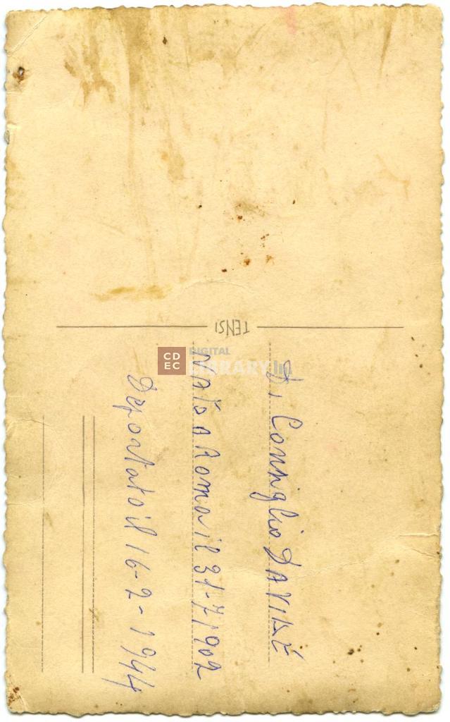 | iscrizioni | sul verso del supporto l'indicazione manoscritta: "Di Consiglio Davide nato a Roma il 31-7-1902 Deportato il 16-2-1944" |