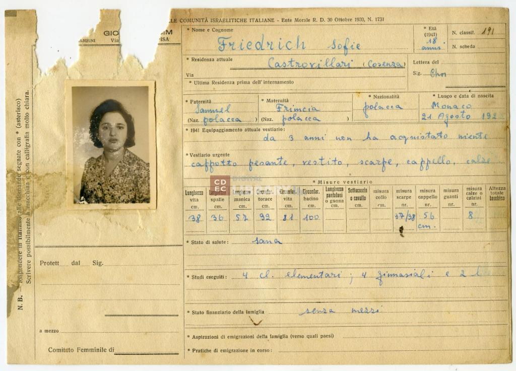 | titolo attribuito | Scheda di Friedrich Sofie |