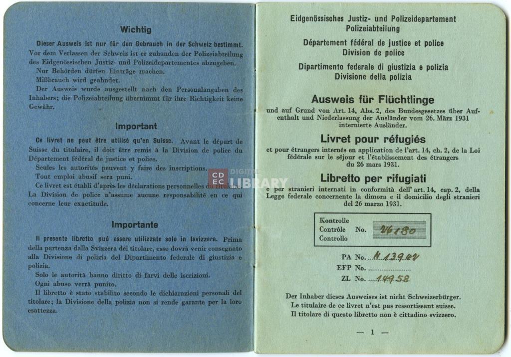 | titolo attribuito | Libretto per rifugiati di Foà Enrico |