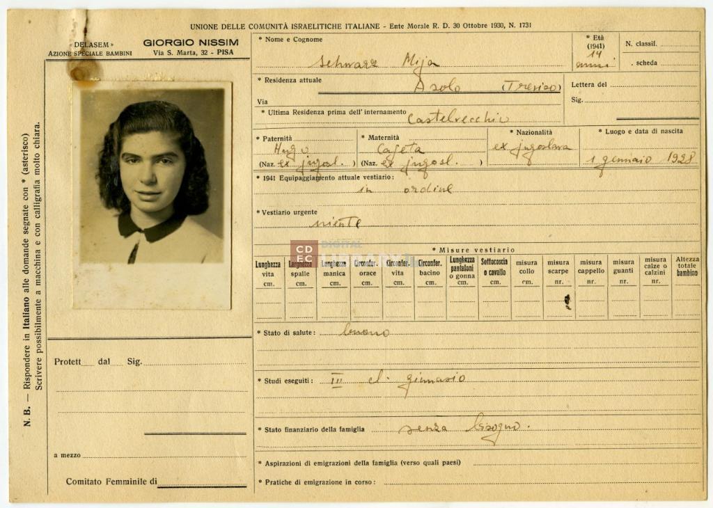 | osservazioni | Il ritratto fotografico correda le due schede identificative compilate dalla "Delasem" Azione speciale bambini con i dati personali dell'assistito al 1941 |