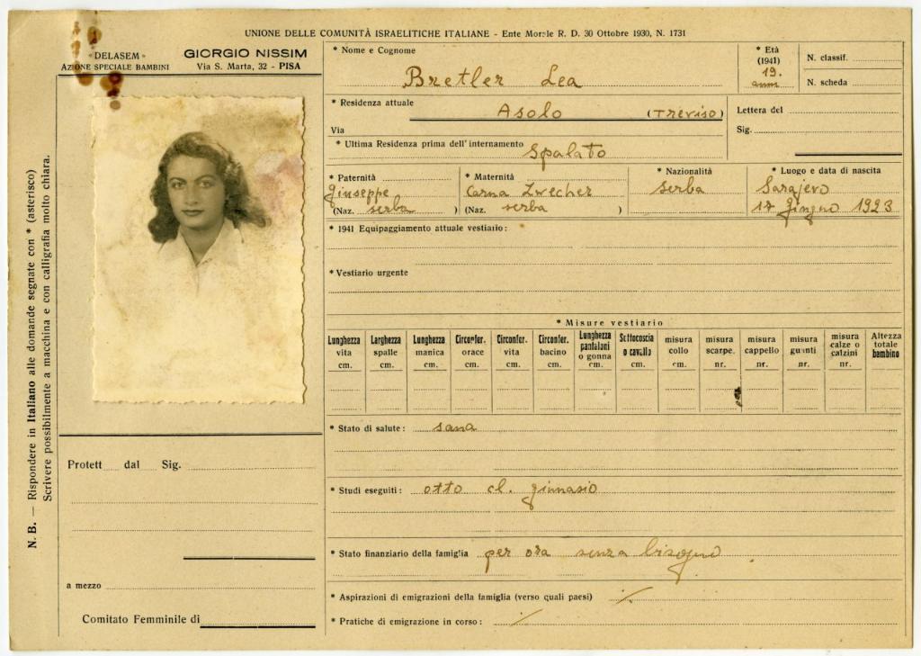 | osservazioni | Il ritratto fotografico correda le due schede identificative compilate dalla "Delasem" Azione speciale bambini con i dati personali dell'assistito al 1941 |