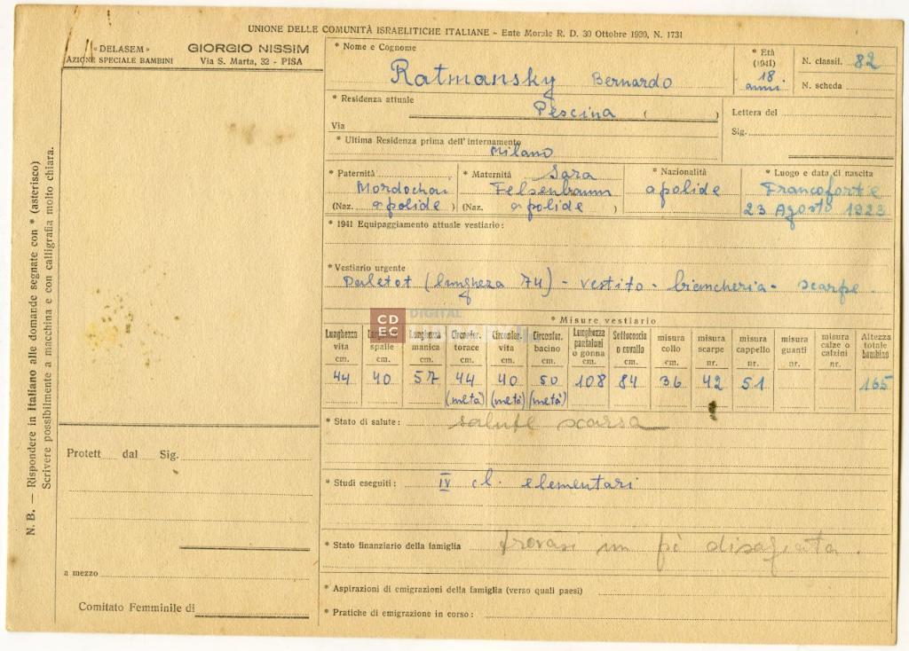 | titolo attribuito | Scheda di Ratmansky Bernardo |