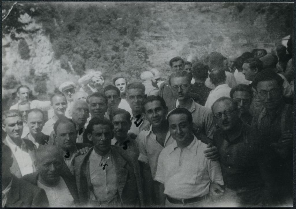 | titolo attribuito | Ritratto di un gruppo numeroso di uomini tra cui [?] Steiner, Fritz Popper, Heinz Marcus Nadel, Leiser (Leo) Schwammenthal e Milan Singer nel campo di internamento di Campagna |