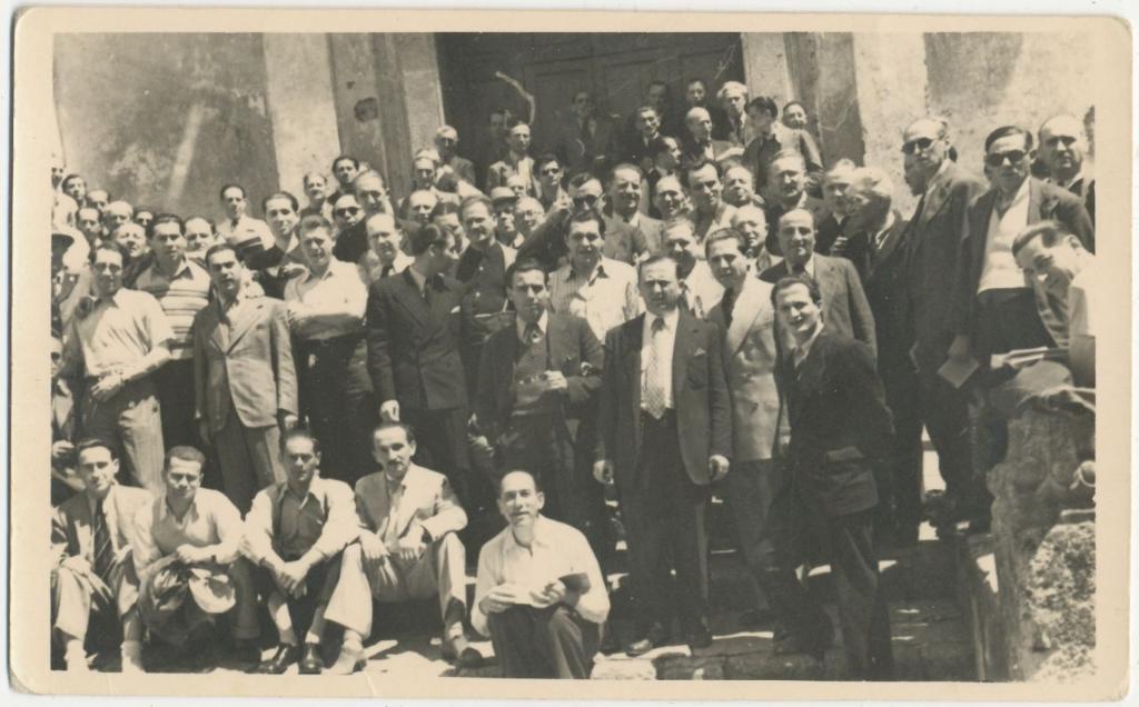 | osservazioni | In piedi sulla destra Aron Windwehr con abito scuro e cravatta chiara. Alla sua sinistra, [?] Spiegel, vestito di chiaro. |
