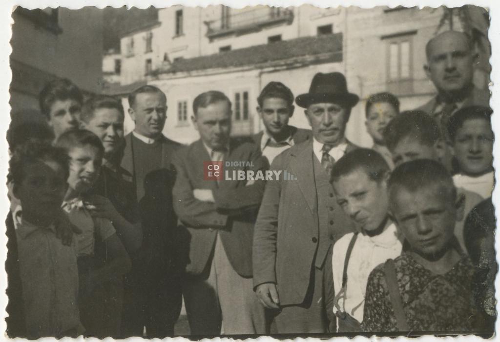 titolo attribuito | Ritratto di gruppo con Aron Windwehr e numerosi bambini nel campo di internamento di Campagna |