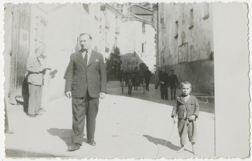 | titolo attribuito | Aron Windwehr cammina per una strada del campo di internamento di Campagna, affiancato da un bambino |