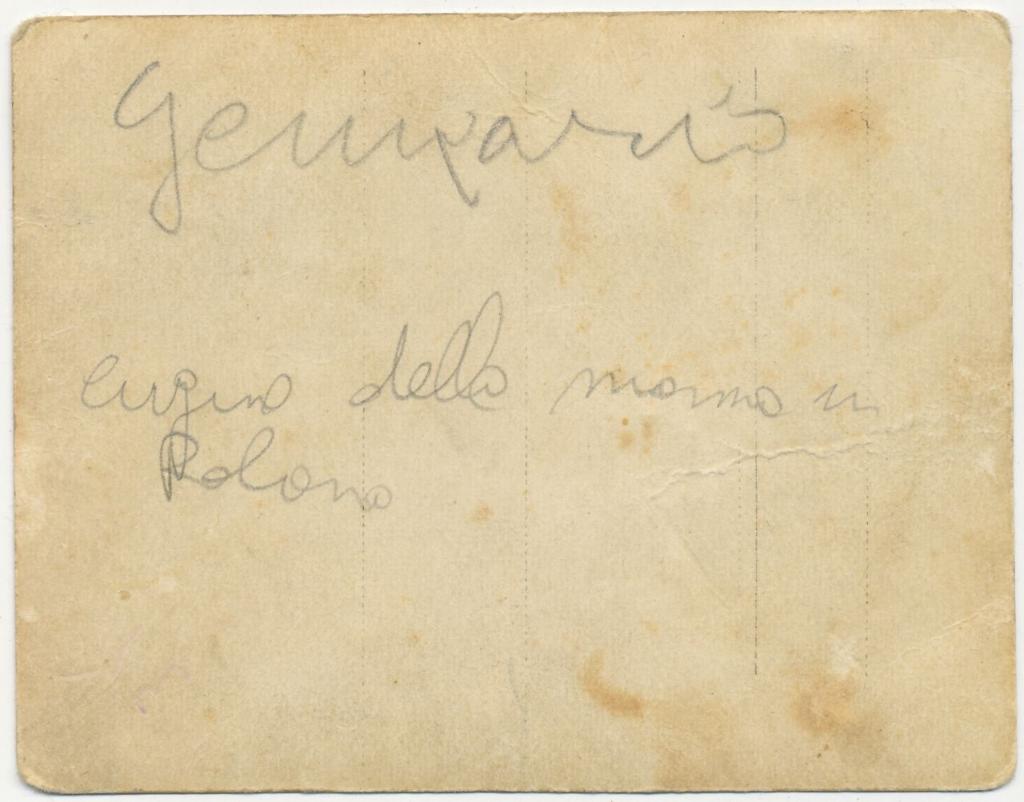 | iscrizioni | sul verso del supporto: una parola indecifrabile scritta a matita e la frase "cugina/o/e della mamma in Polonia" |