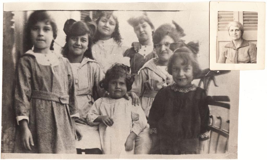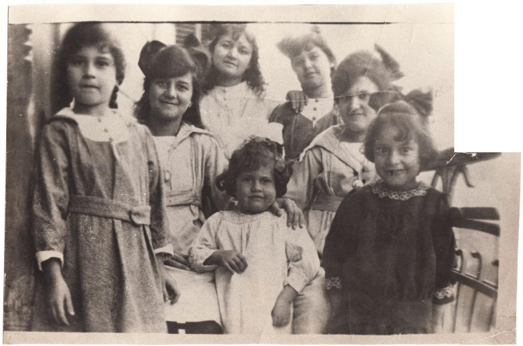 | osservazioni | Dall'album grande "impressionista". Nella fotografia si riconoscono da sinistra: Andrée Sciama, Oro Sciama, Linda Sciama (dietro), Ivette Sciama, Nelly Sciama (dietro), Ester Sciama, Marcelle Sciama (poi coniugata Sciama). Il cognome era anche riportato nella forma "Chamma". La fotografia fu scattata da Jacques Hakim definito "beau frère di Ester". |