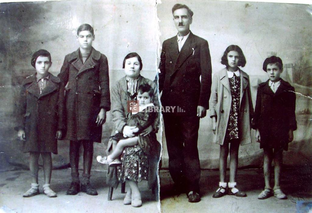| osservazioni | Da sinistra Raffaele Cittone, Mordechai Max Cittone, Fortunata Barbout in Cittone con in braccio Vittoria Cittone, Abramo Bechor Cittone, Sol Cittone, Nissim Cittone. Furono tutti deportati; l'unica sopravvissuta della famiglia fu Sol Cittone. |