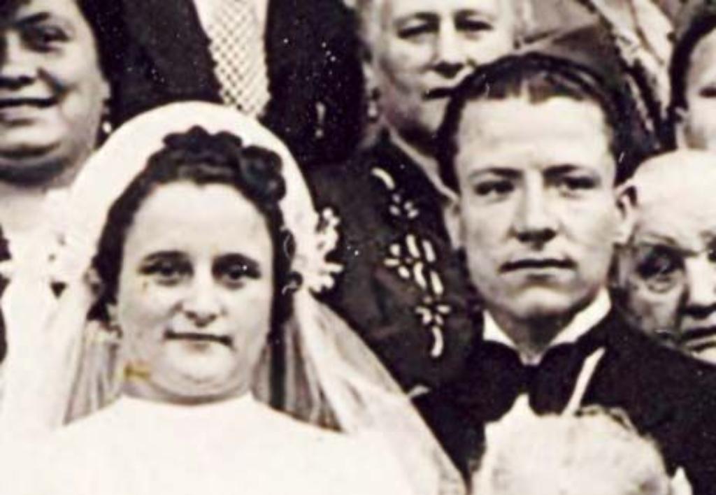 | osservazioni | Particolare dei volti della sposa Enrica Caviglia in Di Cave (a sinistra) e dello sposo Edmondo Di Cave (a destra), ritagliato dal ritratto di gruppo eseguito sulla scalinata esterna della Sinagoga di Roma (inv. 174-660) |