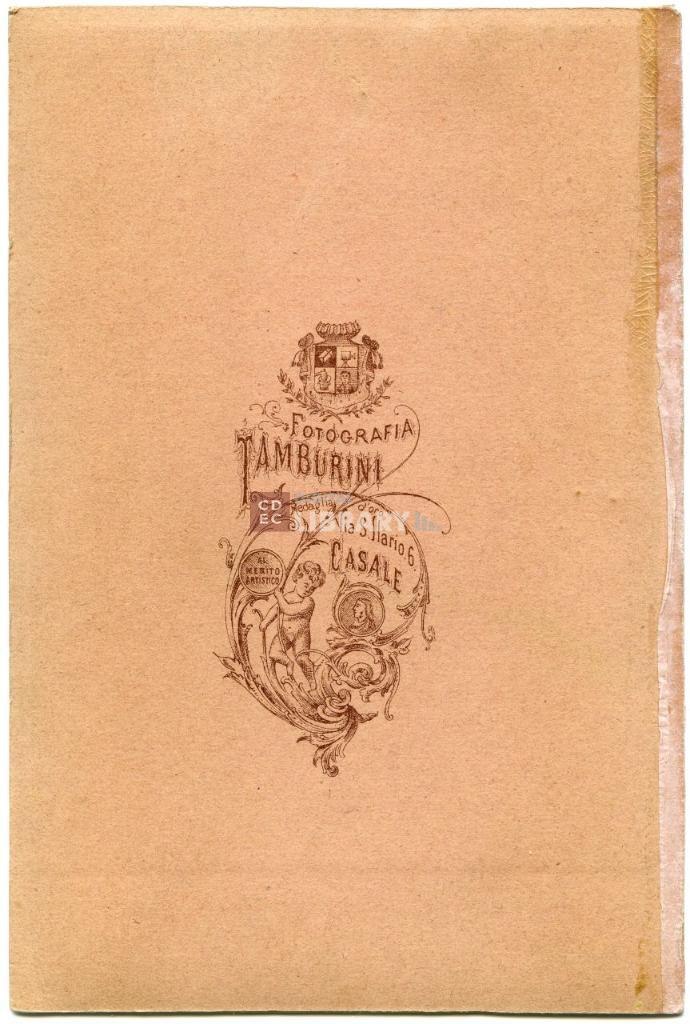 timbri, marchi | sul recto del supporto secondario marchio commerciale del fotografo con la scritta "Ritratto Gabinetto/ Processo istantaneo/ Fotografia Tamburini/ Casale, via S. Ilario, 6"; sul verso del supporto secondario marchio commerciale del fotografo "Fotografia Tamburini/ via S. Ilario 6, Casale/ Medaglia d'oro al merito artistico" |