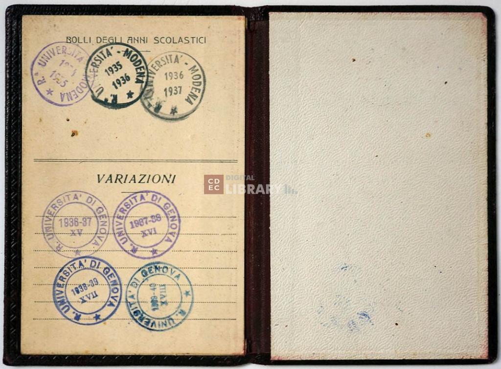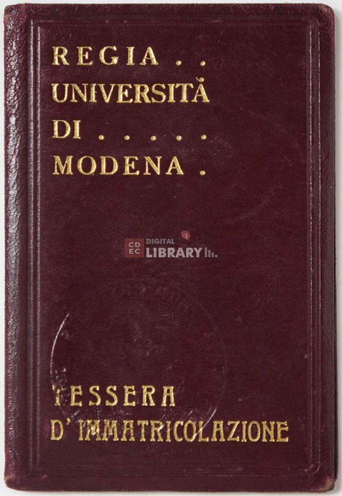 titolo attribuito | Tessera d'immatricolazione della Regia Università di Modena di Wolf Mojzesz Aron |