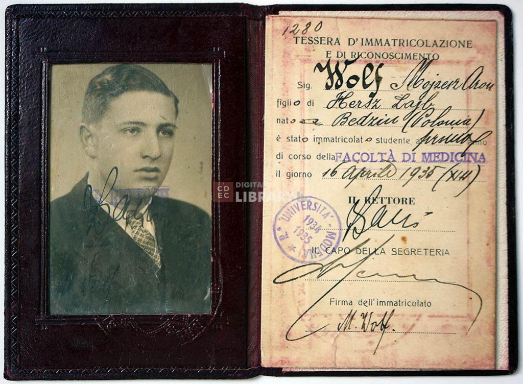 osservazioni | Mojezsz Aron (detto Mietek) Wolf si iscrive alla Facoltà di medicina dell'Università di Modena nell'anno accademico 1934-1935 |