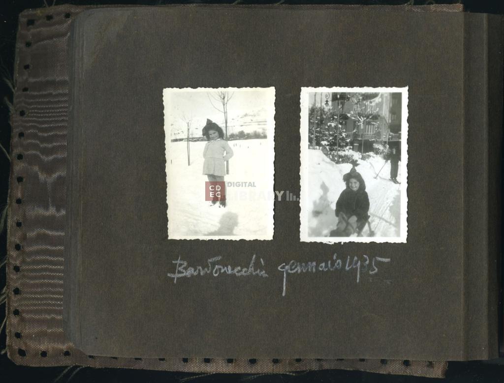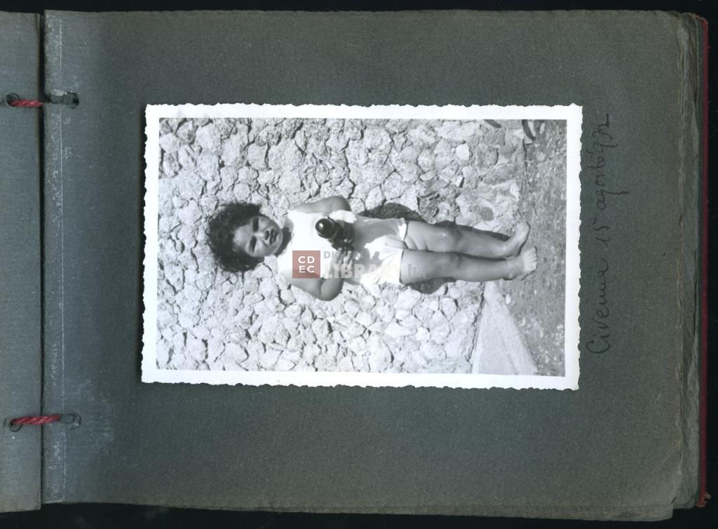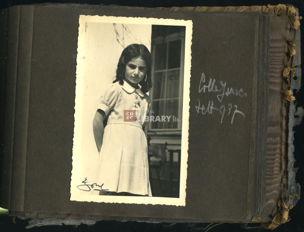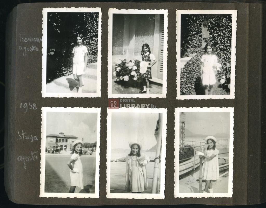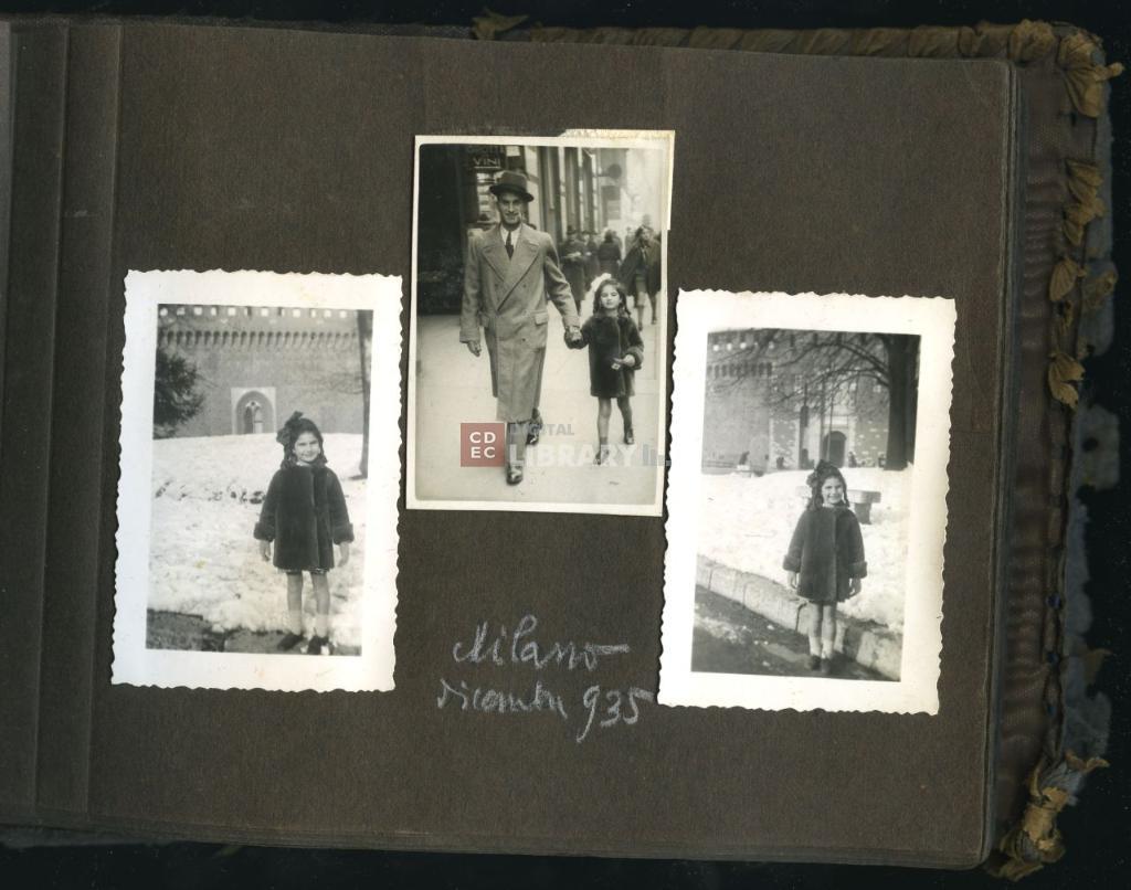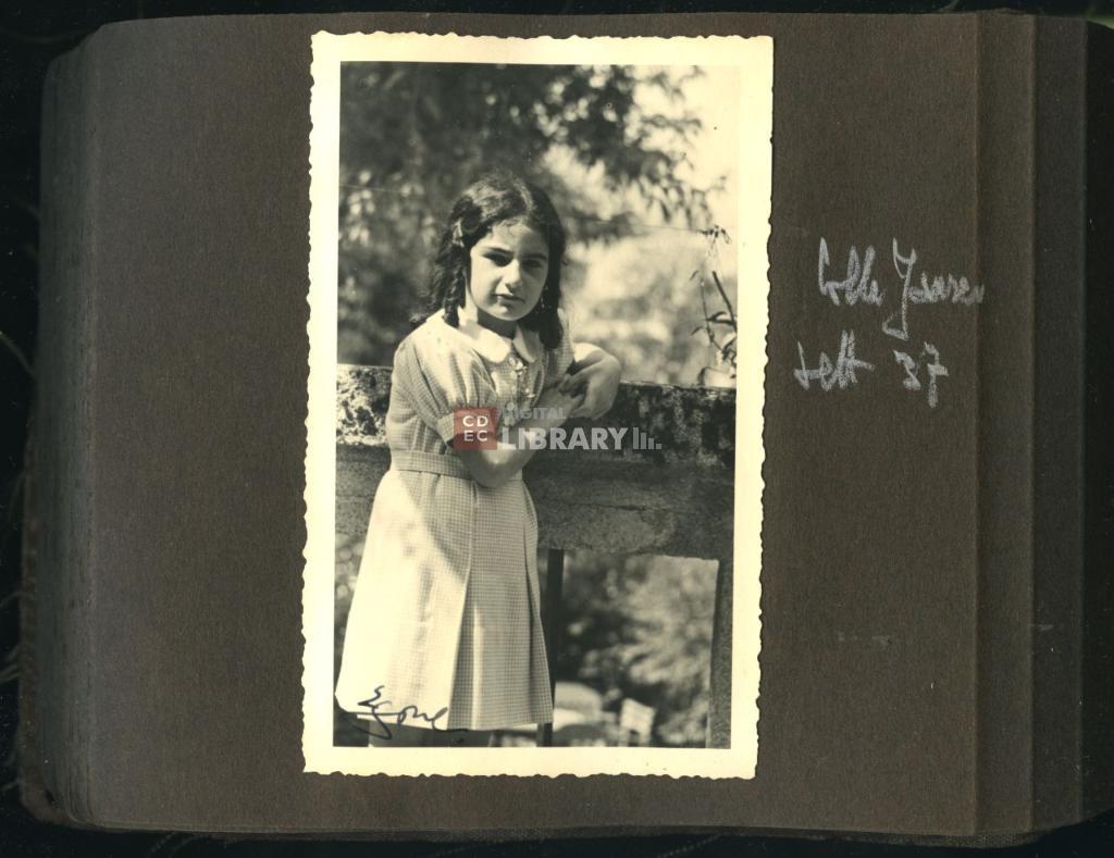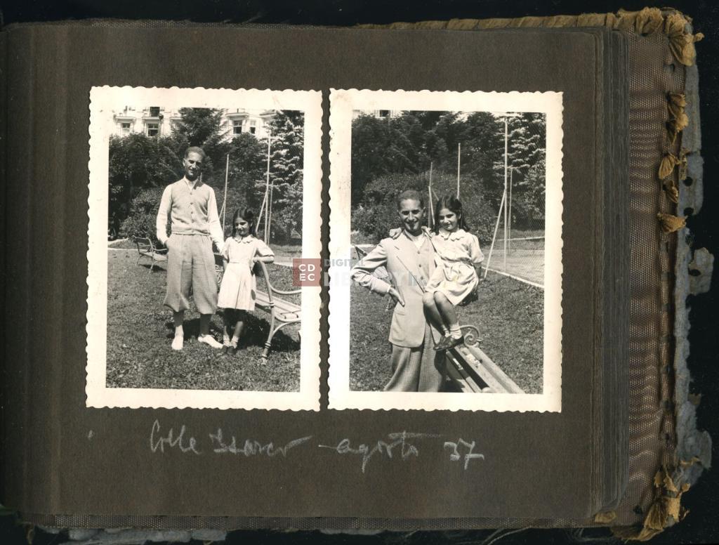 osservazioni | L'album raccoglie le fotografie dell'infanzia di Liliana Segre (poi coniugata Belli Paci), dall'età di quattro anni fino al raggiungimento dei nove anni di età. Fu confezionato dal padre di Liliana, Alberto Segre e reca le didascalie manoscritte dal medesimo. Liliana Segre è ripresa sia in ritratti singoli, sia insieme alla balia Caterina De Guz, alla tata tedesca (una ragazza ebrea in fuga dalla Germania verso gli Stati Uniti, che nel 1936 viene incaricata di sostituire la balia Caterina quando quest'ultima decide di lasciare il lavoro presso la famiglia Segre), al padre Alberto Segre, alla nonna materna Bianca Levi in Foligno, al nonno paterno Giuseppe (Pippo) Segre, agli zii paterni Amedeo Segre ed Enrica Fumagalli in Segre, ai cugini Marcella Lovvy, Giancarlo e Galeazzo Foligno e Fiorella Segre con i genitori Luciano Segre e Rosina Iaffe in Segre, agli amici d'infanzia Maria Grazia Paolinelli, Nicoletta Braibanti (poi coniugata Valletti), Giorgio Cesati Cassin e Marisa Cappellini, agli amici di famiglia Ornella Calabi, il signor Benjamin (un ebreo tedesco, poi suicidatosi), la signora Carla (coniugata Aguzzi de Villeneuve), Denise Canetto in Escobedo e la figlia. In alcuni scatti fotografici Liliana è raffigurata sul suo adorato triciclo che le fu regalato quando aveva quattro anni e che lei considera il suo primo ricordo ("Fino a quando la mia stella brillerà", p. 17). Alle pagine 77 e 78 viene riportata una data errata: da un confronto con altre fotografie si può presumere che questi scatti non furono eseguiti nel dicembre 1938 ma nell'aprile 1939. Liliana Segre, il padre Alberto e i nonni paterni Olga e Giuseppe Segre furono deportati ad Auschwitz nel 1944. |