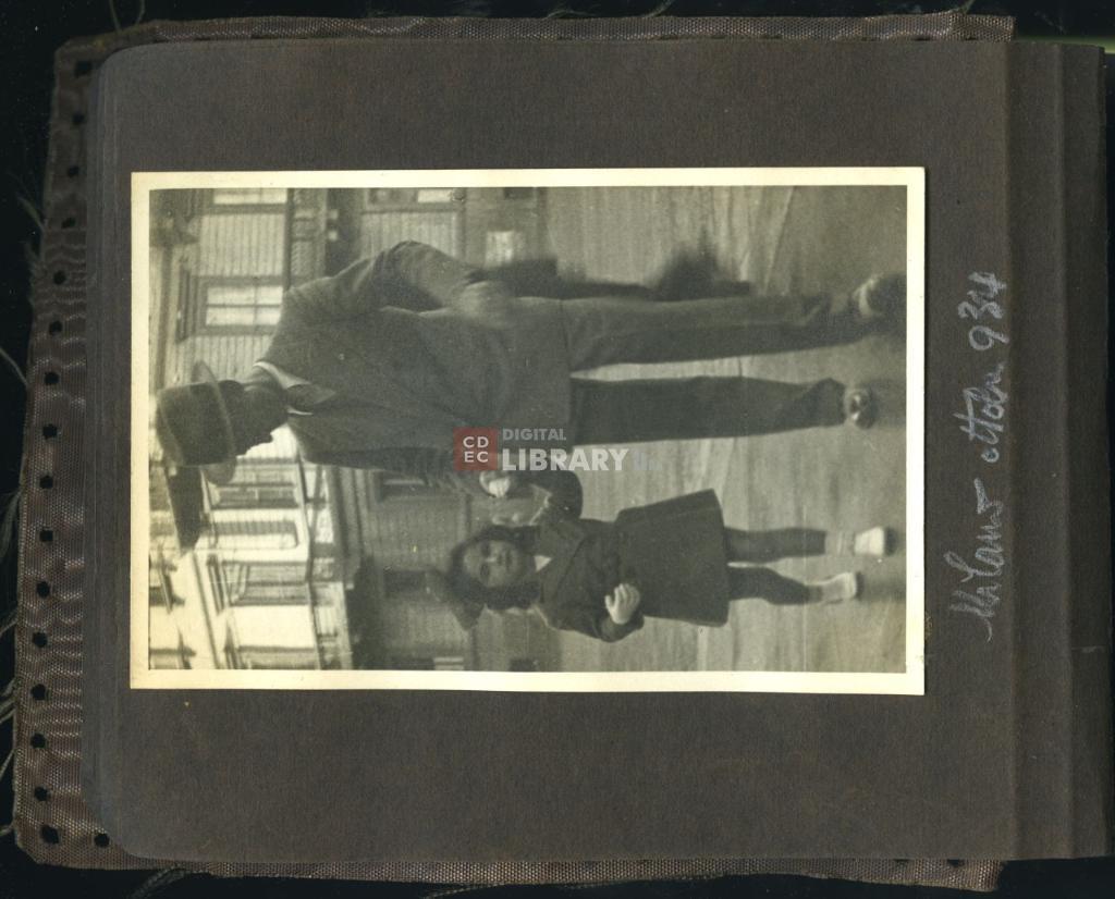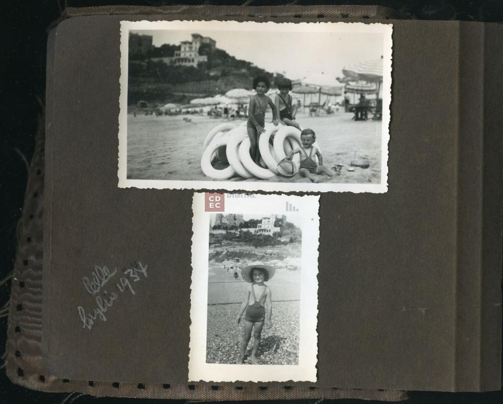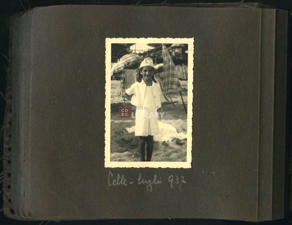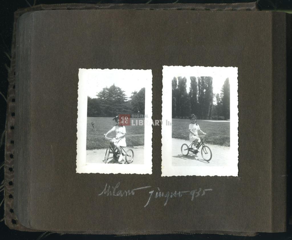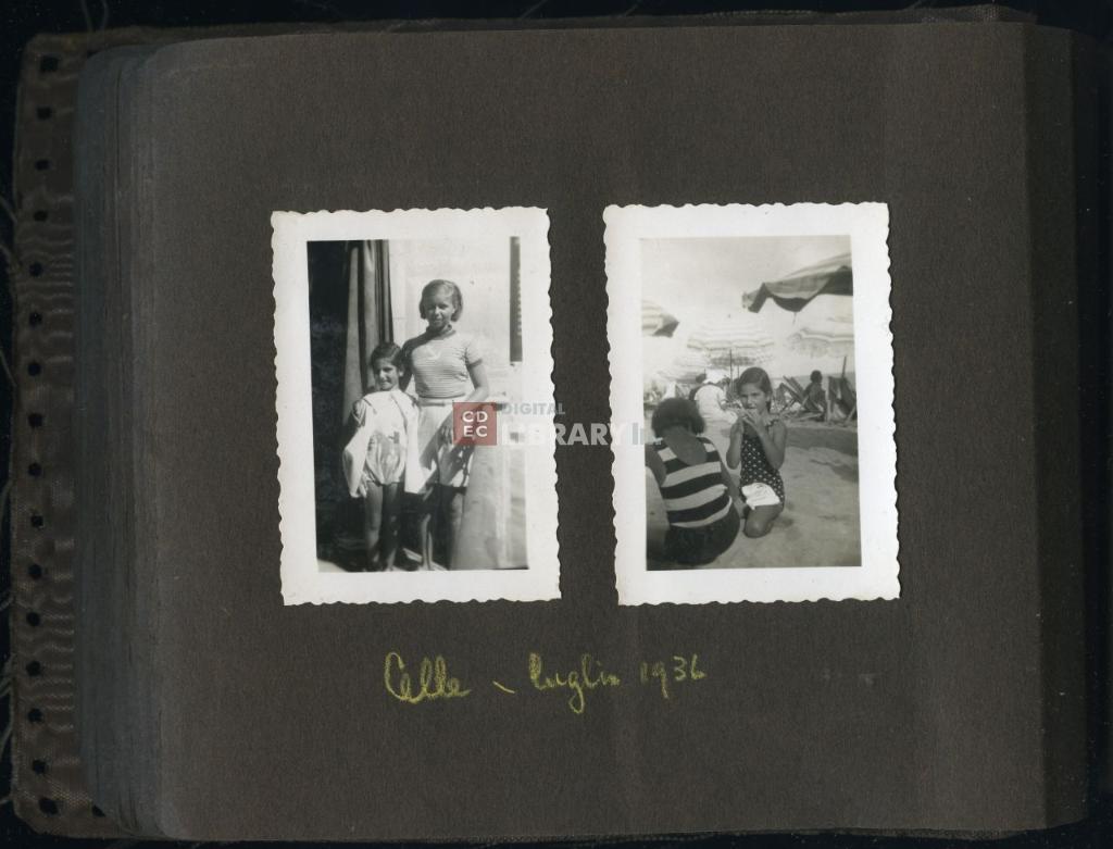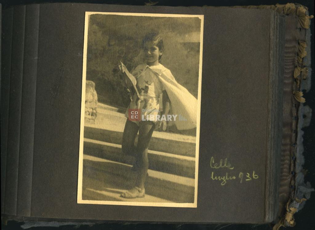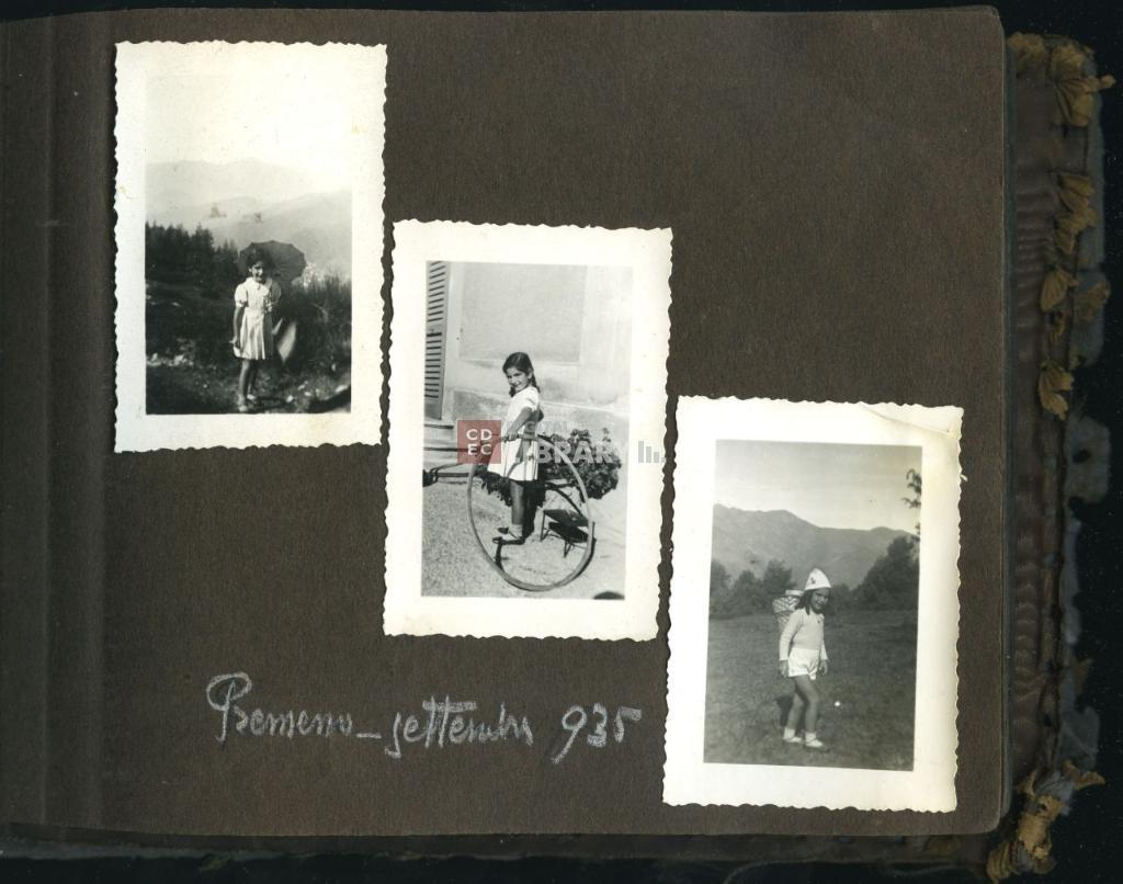 osservazioni | L'album raccoglie le fotografie dell'infanzia di Liliana Segre (poi coniugata Belli Paci), dall'età di quattro anni fino al raggiungimento dei nove anni di età. Fu confezionato dal padre di Liliana, Alberto Segre e reca le didascalie manoscritte dal medesimo. Liliana Segre è ripresa sia in ritratti singoli, sia insieme alla balia Caterina De Guz, alla tata tedesca (una ragazza ebrea in fuga dalla Germania verso gli Stati Uniti, che nel 1936 viene incaricata di sostituire la balia Caterina quando quest'ultima decide di lasciare il lavoro presso la famiglia Segre), al padre Alberto Segre, alla nonna materna Bianca Levi in Foligno, al nonno paterno Giuseppe (Pippo) Segre, agli zii paterni Amedeo Segre ed Enrica Fumagalli in Segre, ai cugini Marcella Lovvy, Giancarlo e Galeazzo Foligno e Fiorella Segre con i genitori Luciano Segre e Rosina Iaffe in Segre, agli amici d'infanzia Maria Grazia Paolinelli, Nicoletta Braibanti (poi coniugata Valletti), Giorgio Cesati Cassin e Marisa Cappellini, agli amici di famiglia Ornella Calabi, il signor Benjamin (un ebreo tedesco, poi suicidatosi), la signora Carla (coniugata Aguzzi de Villeneuve), Denise Canetto in Escobedo e la figlia. In alcuni scatti fotografici Liliana è raffigurata sul suo adorato triciclo che le fu regalato quando aveva quattro anni e che lei considera il suo primo ricordo ("Fino a quando la mia stella brillerà", p. 17). Alle pagine 77 e 78 viene riportata una data errata: da un confronto con altre fotografie si può presumere che questi scatti non furono eseguiti nel dicembre 1938 ma nell'aprile 1939. Liliana Segre, il padre Alberto e i nonni paterni Olga e Giuseppe Segre furono deportati ad Auschwitz nel 1944. |