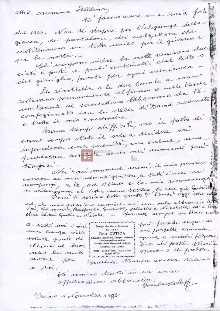 osservazioni | Giulio Bolaffi ritratto con la divisa da partigiano; la foto, conservata presso la ditta Bolaffi, ha avuto ampia circolazione (da appunti trasmessi da Stella Bolaffi in data 2 novembre 2017), Allegata alla fotografia vi è un lunga lettera di Giulio Bolaffi alla figlia Stella del 1° novembre 1982, nella quale egli racconta della sua esperienza di partigiano; in basso compare il marchio commerciale della Ditta Cutica di Torino |