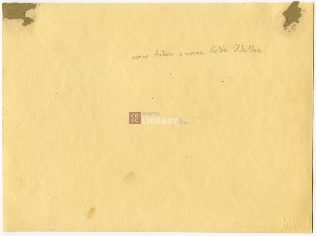 iscrizioni | sul verso del supporto la didascalia manoscritta a matita: "nonno Arturo e nonna Gilda Weiller" |
