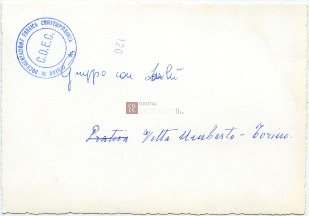 | iscrizioni | sul verso del supporto l'indicazione manoscritta a penna blu "Gruppo con Lulù/ Vitta Umberto - Torino" |