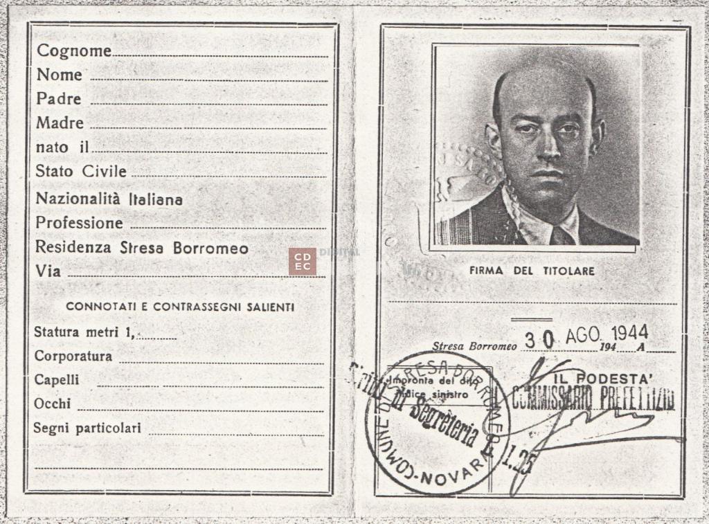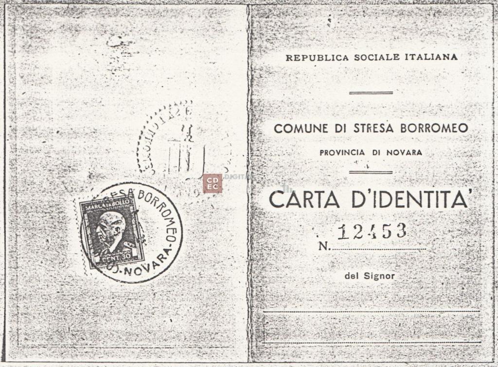 notizie storico-critiche | Si tratta di un documento falso, ancora da compilare. La carta d'identità del Comune di Stresa Borromeo reca la firma del Podestà, Commissario Prefettizio della Repubblica Sociale Italiana |