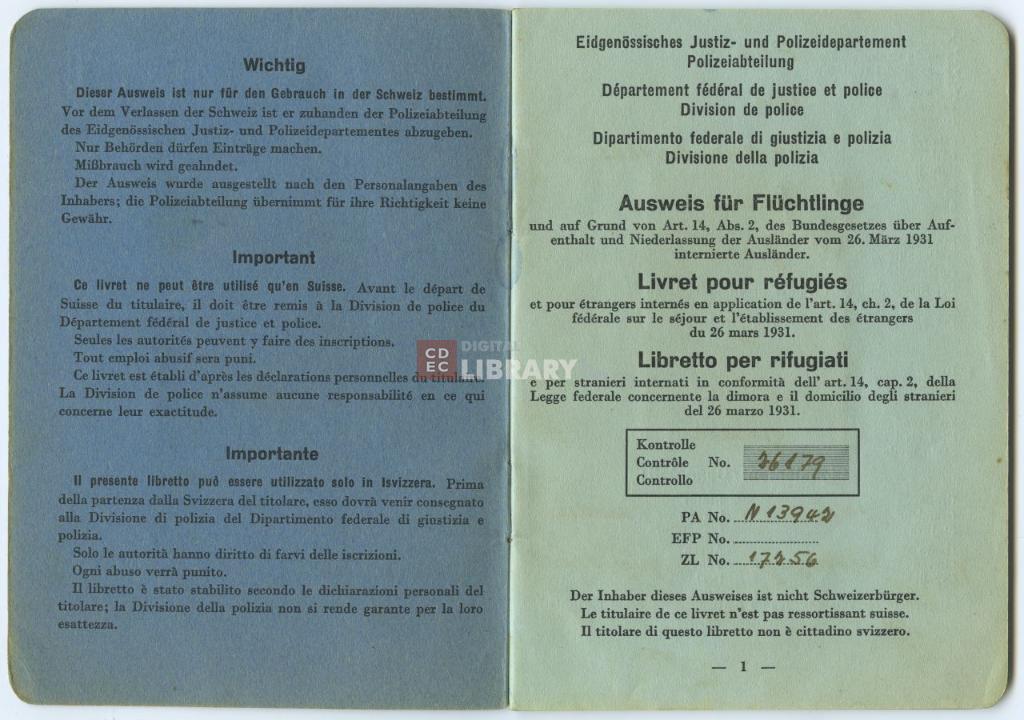 | titolo attribuito | Libretto per rifugiati di Foà Elsa |
