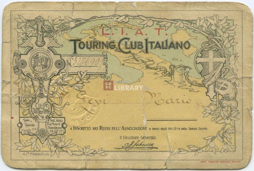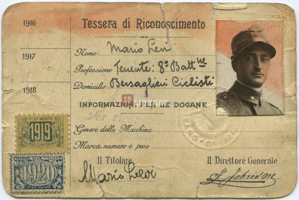 | titolo attribuito | Tessera di riconoscimento del Touring Club Italiano di Levi Mario |