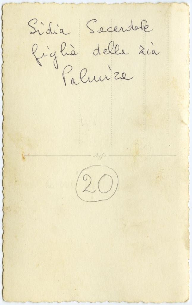 | iscrizioni | sul verso del supporto l'indicazione manoscritta "Lidia Sacerdote figlia della zia Palmira" |