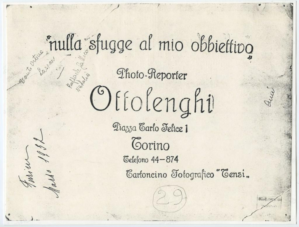 | timbri, marchi | nell'immagine in basso a sinistra il timbro a secco con il marchio commerciale del fotografo - sul verso del supporto il motto e il marchio commerciale del fotografo |