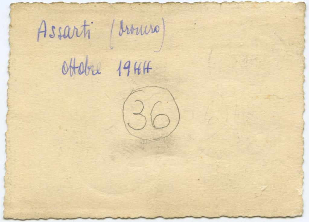 | iscrizioni | sul verso del supporto l'indicazione manoscritta a penna "Assarti (Dronero) ottobre 1944" |
